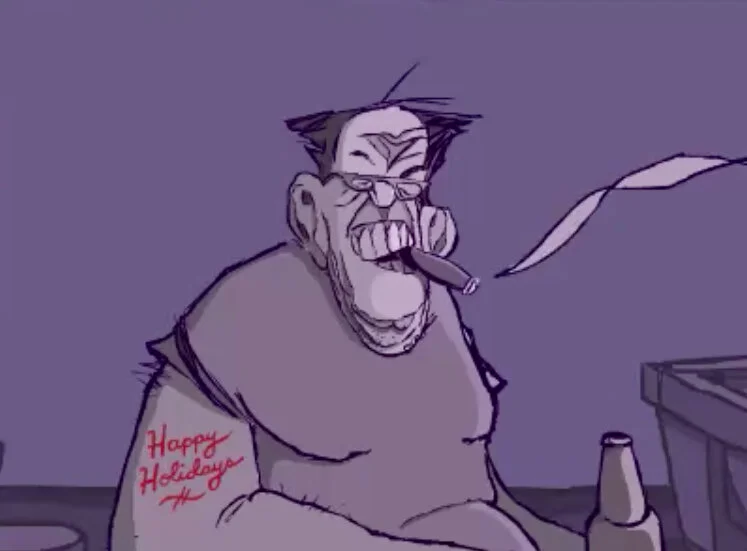 The kids are too old now to make animated holiday cards. Trouser was game to help but the clicking to add frames on the animation software kept making him bark. So the card (below) is really brief. To play it, click on the arrow.